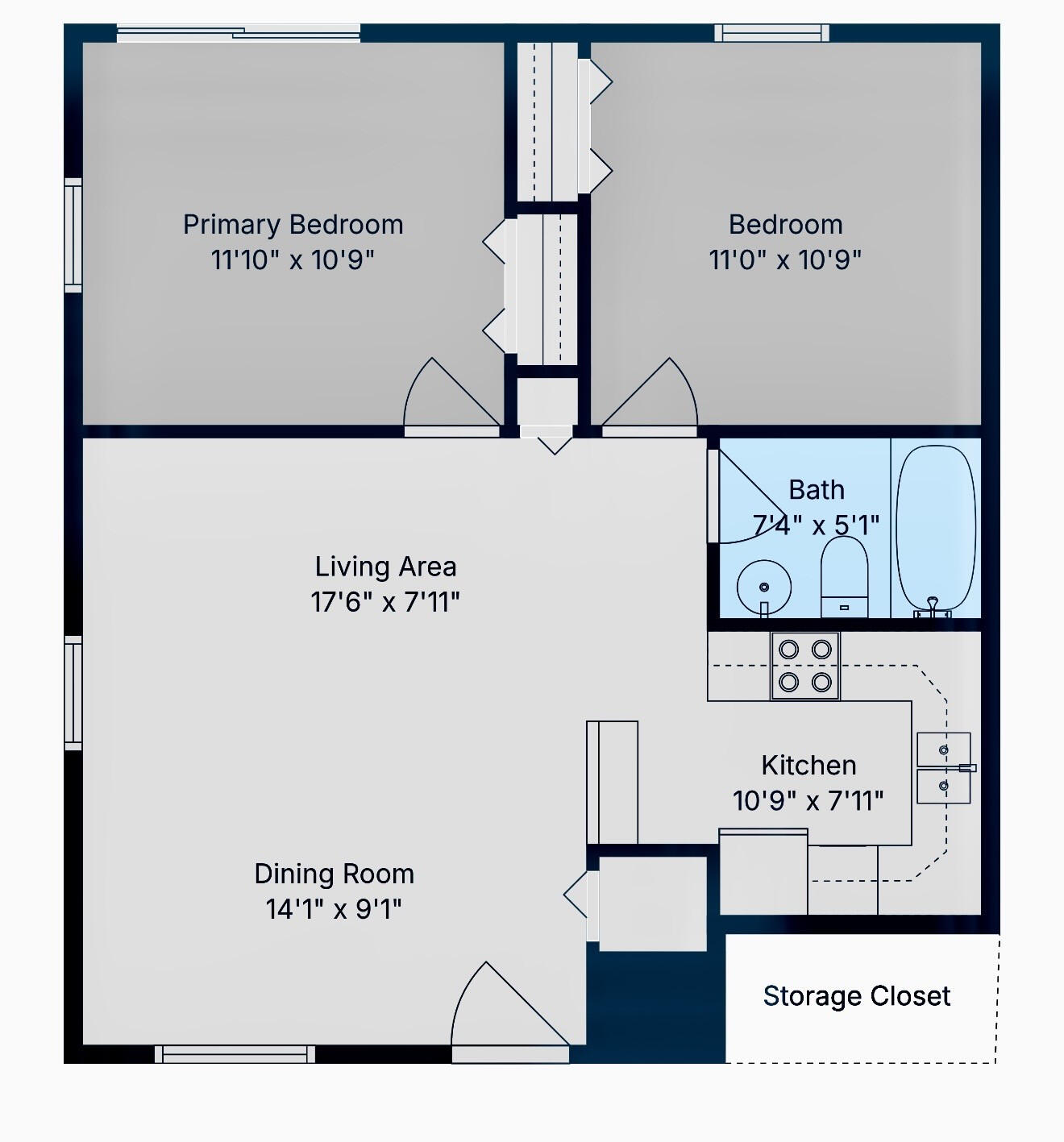 Each apartment features 2 large bedrooms and 1 bath, with full kitchen, spacious living room, semi-private rear patio, and separate entry storage with washer/dryer hookups. Most include ceiling fans, granite countertops and stainless steel appliances.